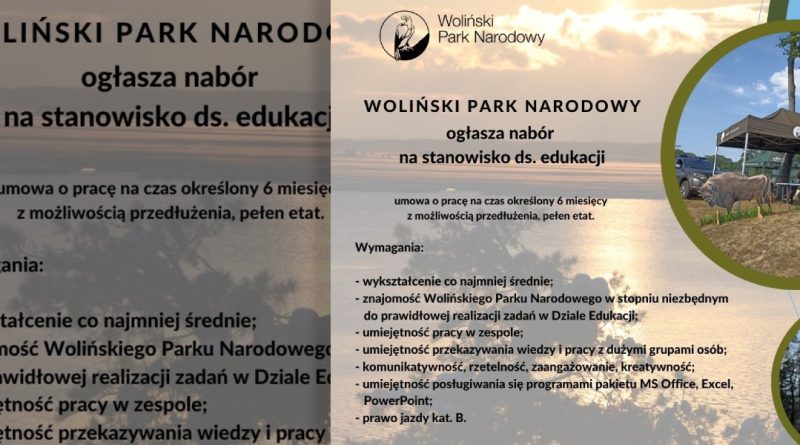Woliński Park Narodowy prowadzi nabór do Działu Edukacji