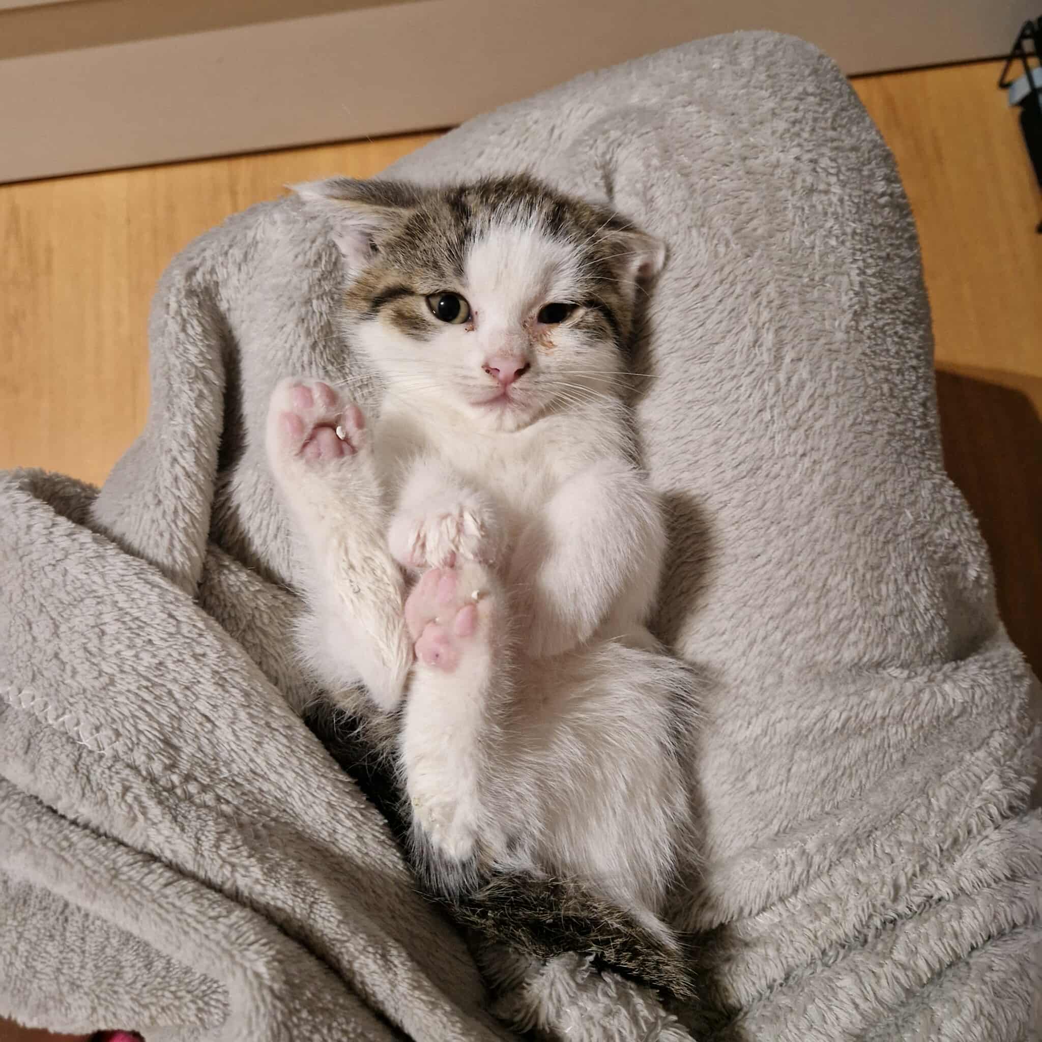 Kocięta są po wizycie weterynaryjnej, odrobaczone, w trakcie socjalizacji – idzie im coraz lepiej, traktorek działa na cały regulator.
