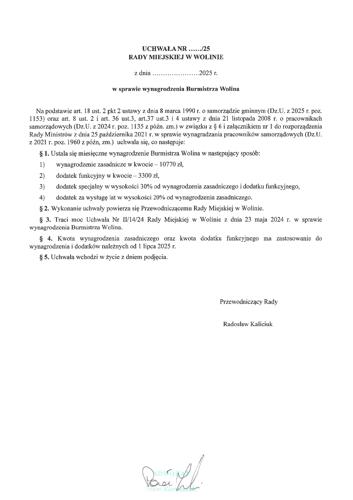 Klub Radnych „Razem zmieniamy Gminę Wolin” popierający burmistrz Ewę Grzybowską złożył na najbliższą sesję projekt uchwały. Uchwała dotyczy zmiany wynagrodzenia burmistrz Wolina. Sesja odbędzie się 30 października.