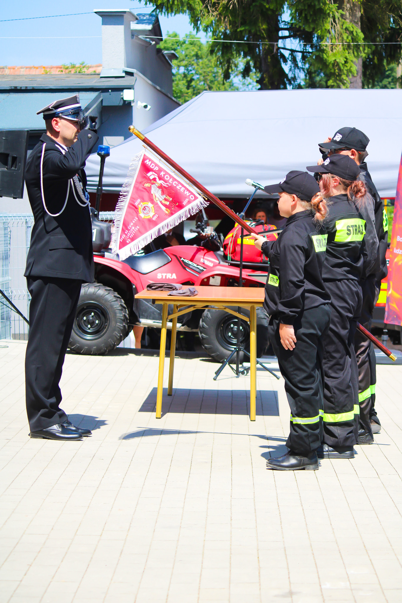 W sobotę, 19 lipca 2025 roku, na placu przy remizie OSP Kołczewo odbył się Festyn Strażacki, który rozpoczął się uroczystym apelem o godz. 13:00 — wręczono odznaczenia, przekazano nowy sprzęt ratowniczy oraz nadano proporzec Młodzieżowej Drużynie Pożarniczej.