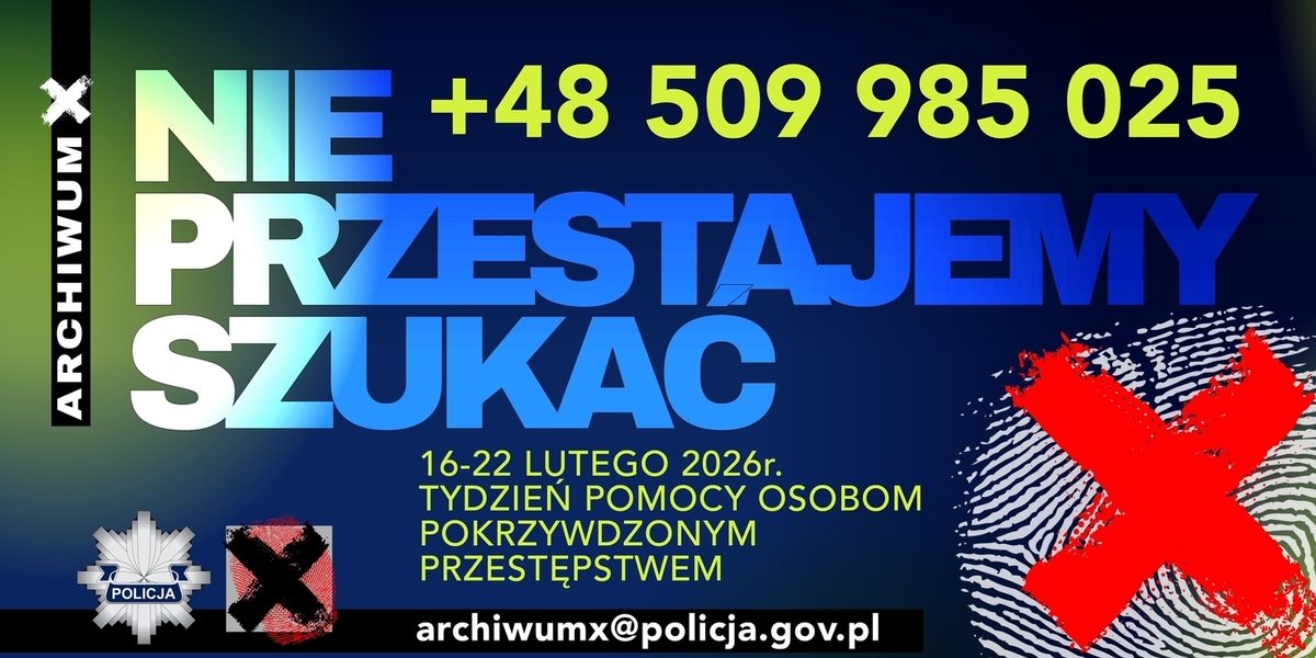 Każda niewyjaśniona sprawa kryminalna to nie tylko tomy akt i zabezpieczone dowody, ale przede wszystkim niezakończona historia zbrodni i bliscy, którzy latami żyją bez odpowiedzi na pytanie: co naprawdę się wówczas wydarzyło? Właśnie z tego powodu powstała ogólnopolska kampania Archiwum X – Nie przestajemy szukać!, która realizowana jest przez Biuro Kryminalne KGP we współpracy z Biurem Komunikacji Społecznej KGP. Akcja prowadzona jest w czasie Tygodnia Pomocy Osobom Pokrzywdzonym Przestępstwem. Jej celem jest przypomnienie, że sprawy zabójstw sprzed wielu lat dotyczą realnych ludzi, ich rodzin i bliskich oraz że wciąż mogą zostać wyjaśnione.