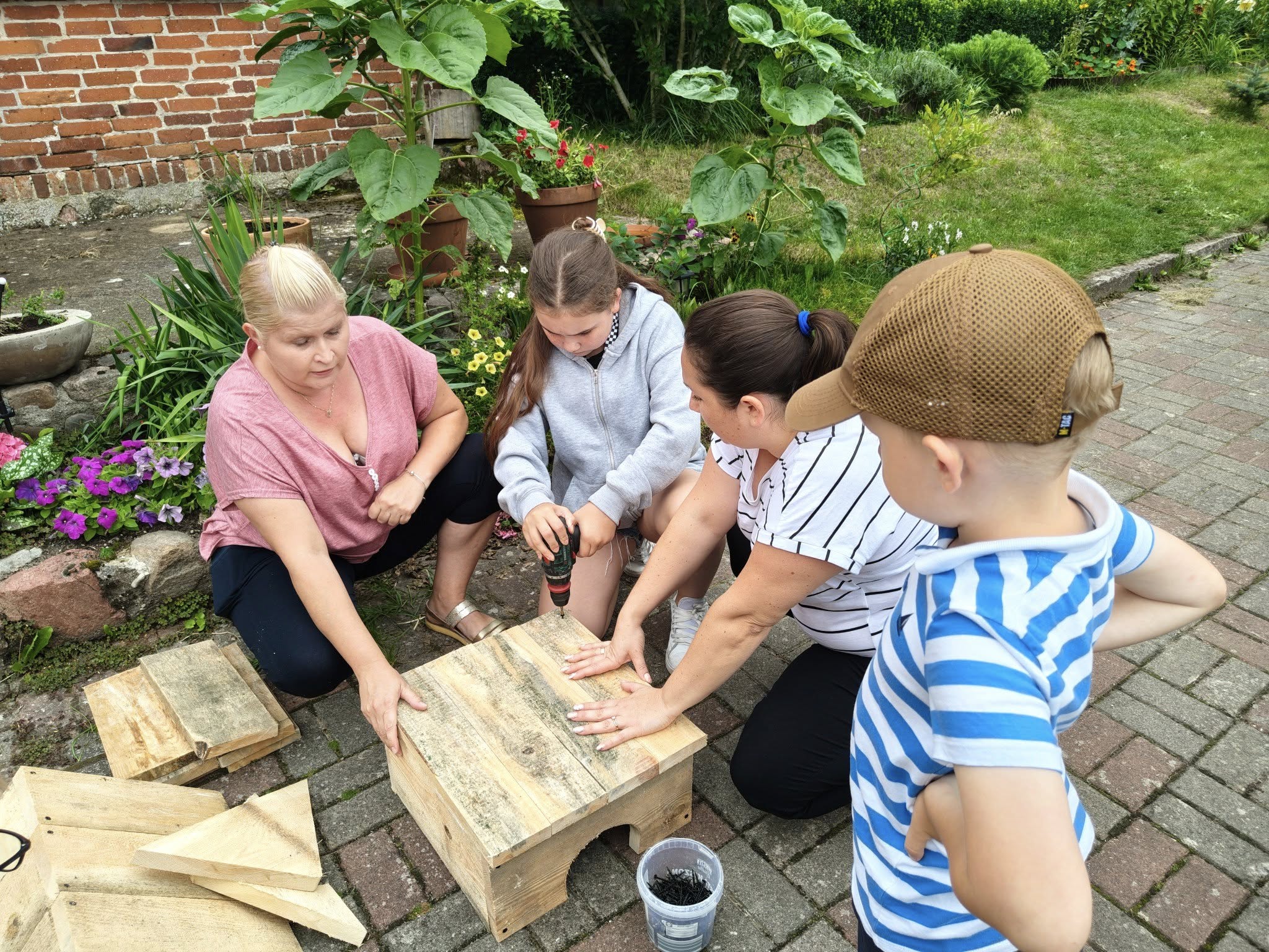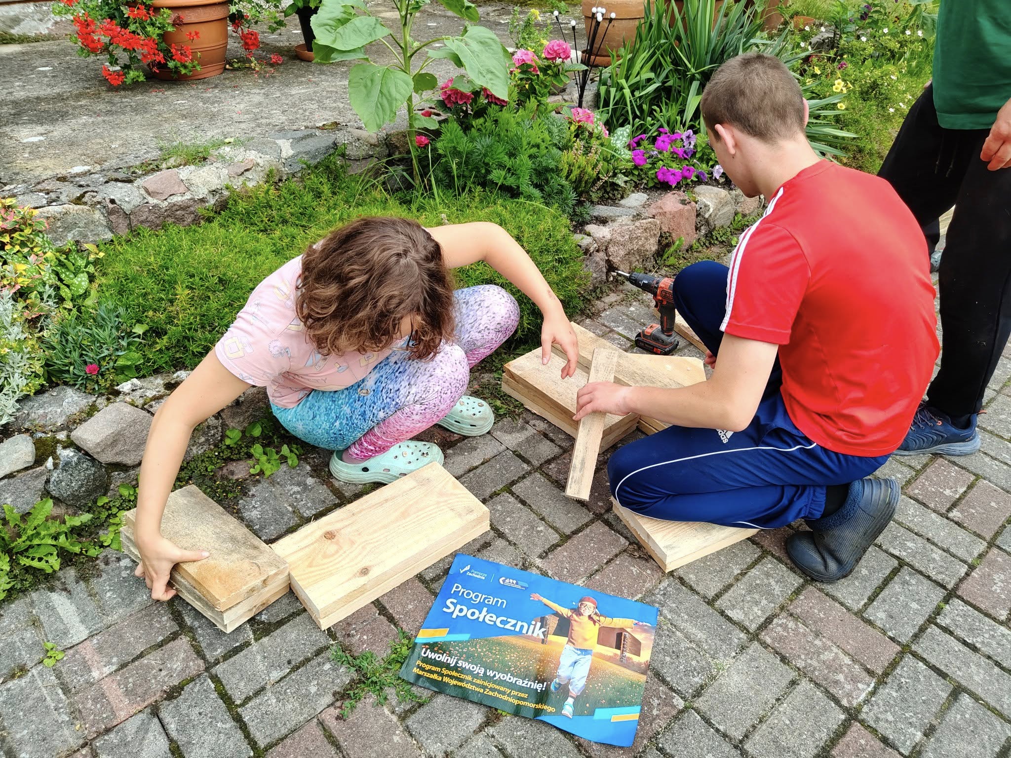 W trakcie warsztatów dzieci i mieszkańcy wspólnie budowali domki dla kotów wolnożyjących. Wujek Michał, jak zwracają się do niego dzieci, ma zacięcie do majsterkowania, więc zadbał o część praktyczną — wykonał pierwowzór domku i pokazał jak pracować z narzędziami. Sołtys Monika Kosińska przyniosła wszystkie potrzebne produkty, a jedna ze starszych dziewczynek uwielbia gotować i przygotowała przekąski dla uczestników — na deser zaś były pyszne domowe ciasta wypieczone przez mieszkankę Trzebieszewa.
