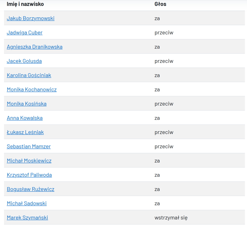 Rada, po dość burzliwej wymianie zdań (LINK DO TRANSMISJI – od 33 minuty) wyraziła wtedy zgodę na dokapitalizowanie. Głosy rozłożyły się następująco: