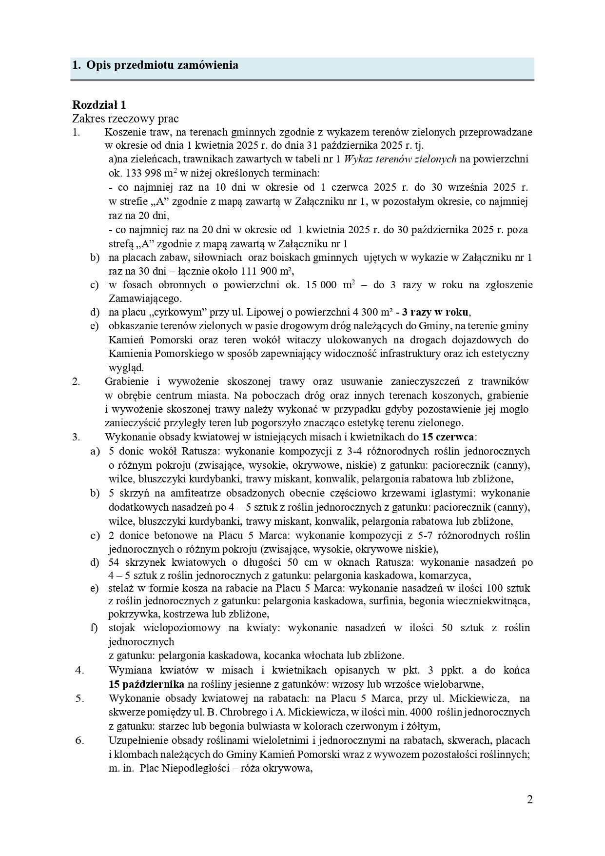 Za to na placach zabaw, siłowniach oraz boiskach gminnych, również na terenach wiejskich, raz na 30 dni – łącznie około 111 900 m². W fosach obronnych o powierzchni ok. 15 000 m2 – na zgłoszenie gminy do 3 razy w roku. Na placu „cyrkowym” (nazewnictwo z przetargu) przy ul. Lipowej o powierzchni 4 300 m² – 3 razy w roku. Do tego PGK było zobowiązane do obkaszania terenów zielonych w pasie drogowym dróg należących do gminy oraz terenu wokół witaczy ulokowanych na drogach dojazdowych do Kamienia w sposób zapewniający widoczność infrastruktury, oraz ich estetyczny wygląd. Czy tak było?