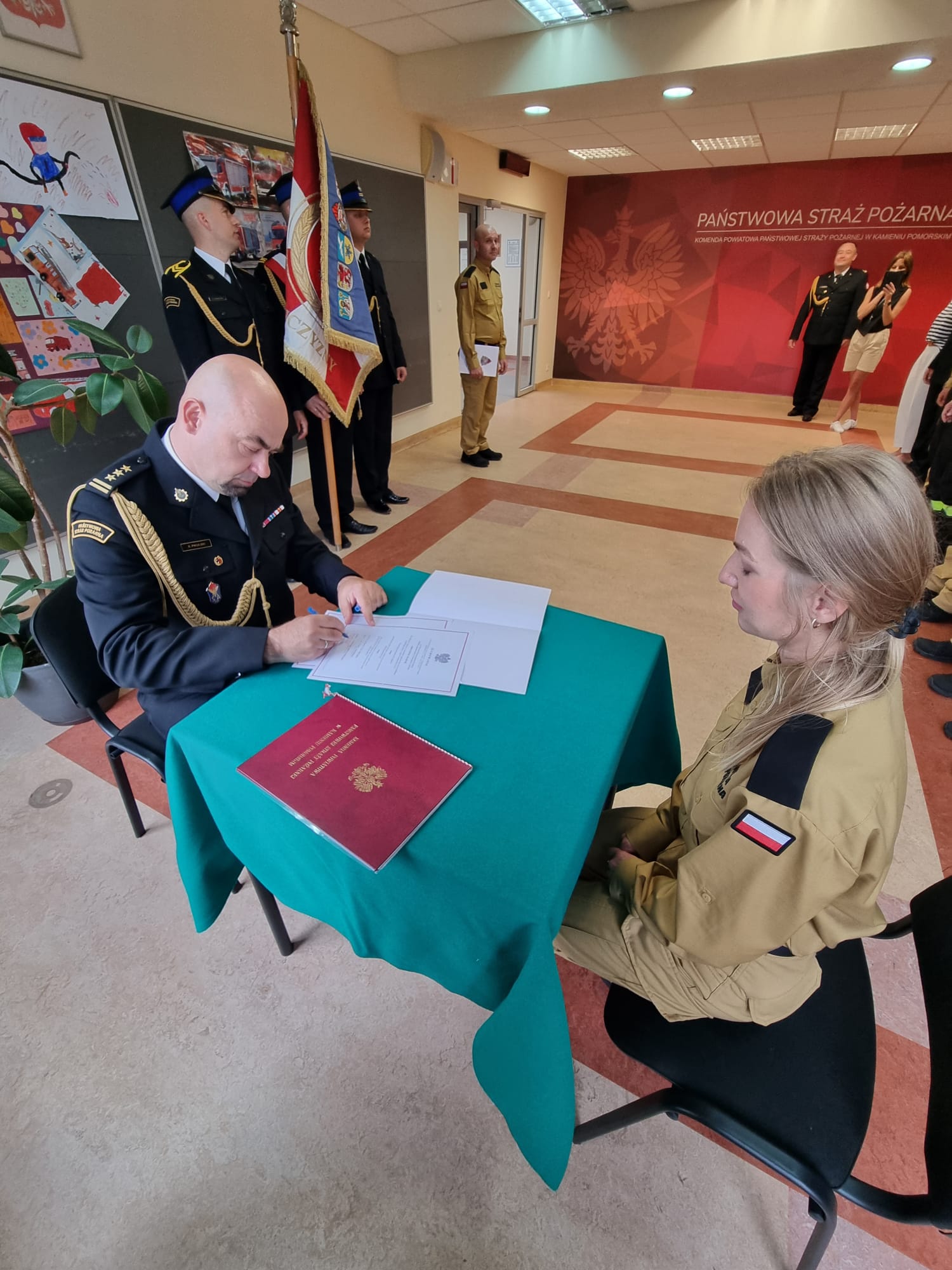 Dzisiaj (3.7.2025 r.) w Komendzie Powiatowej Państwowej Straży Pożarnej w Kamieniu Pomorskim odbyła się uroczysta zbiórka z okazji ślubowania nowo przyjętych funkcjonariuszy do służby przygotowawczej w Państwowej Straży Pożarnej.