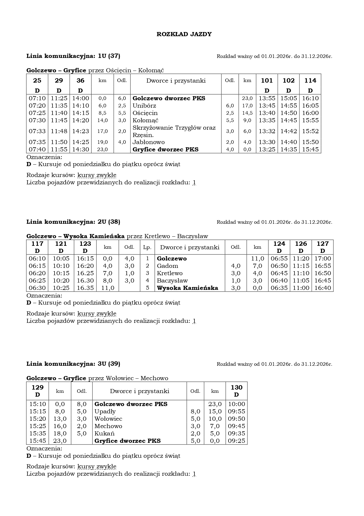 - linia nr 1: Golczewo – Gryfice przez Ościęcin,