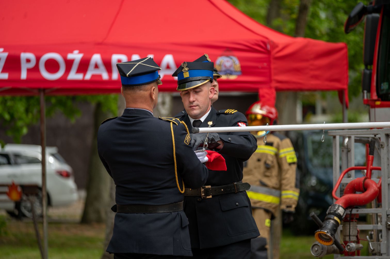 Od godziny 14:00 trwa strażacki piknik – w programie m.in. pokazy sprzętu, stoiska z lokalnymi produktami oraz muzyka na żywo. Swoje stoiska m.in. zaprezentowały Koła Gospodyń Wiejskich, nadleśnictwa, policja oraz straż graniczna.