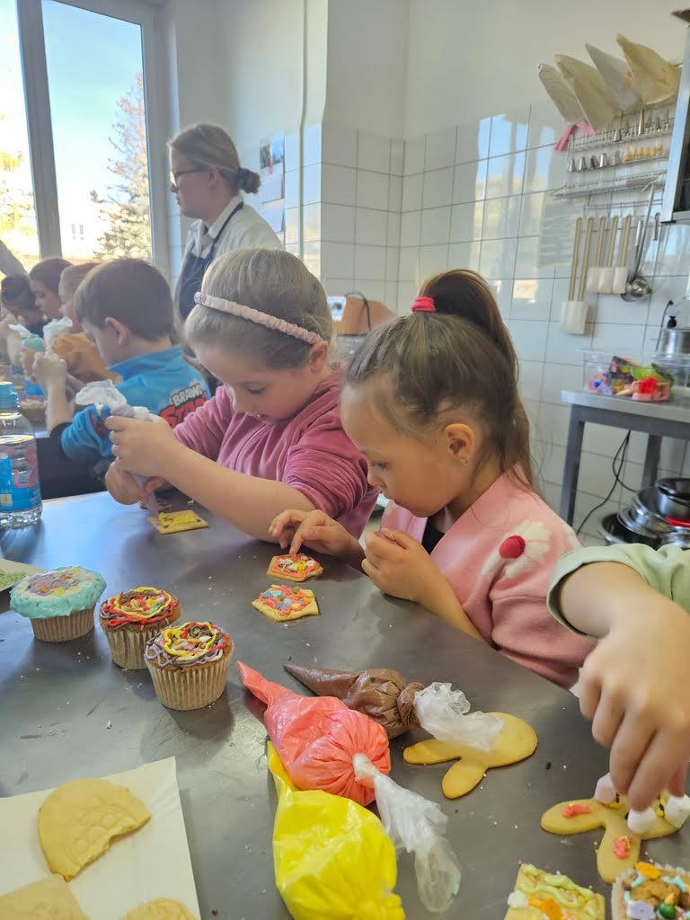Każde dziecko miało okazję przygotować ciastka oraz muffinki, które później dekorowały za pomocą kolorowych lukrów, posypek oraz pianek. Zajęcia były nie tylko kreatywne, ale także edukacyjne. Dzieci nauczyły się, jak ważna jest praca w grupie. Zabawa z dekorowaniem ciasteczek była źródłem radości i satysfakcji, a dzieci miały okazję poczuć się jak prawdziwi cukiernicy.