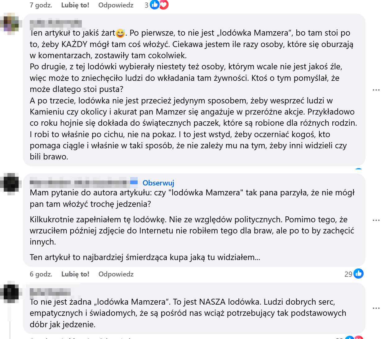 Nadchodzą święta – redaktor portalu Kamienskie Info zauważył, że jadłodzielnia przy Fundacji Zosia stoi pusta, po czym napisał artykuł o… polityce i Sebastianie Mamzerze. Wielu Mieszkańców Kamienia stanęło murem w obronie Jadłodzielni w mediach społecznościowych — w końcu chodzi tu o wspólne dobro i podzielenie się z bardziej potrzebującymi tym czego sami byśmy nie przejedli.