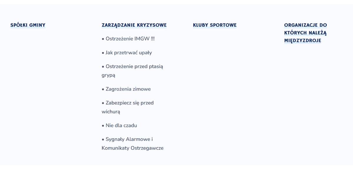 W BIP urzędu nie ma nic, żadnej zakładki dotyczącej bezpieczeństwa. Na stronie www, w kafelku „mieszkaniec” jest ikonka „Alarmy i komunikaty” i informacja co oznaczają poszczególne komunikaty służb w razie zagrożenia skażeniami, zakażeniami, zagrożeniami dla środowiska oraz klęską żywiołową.