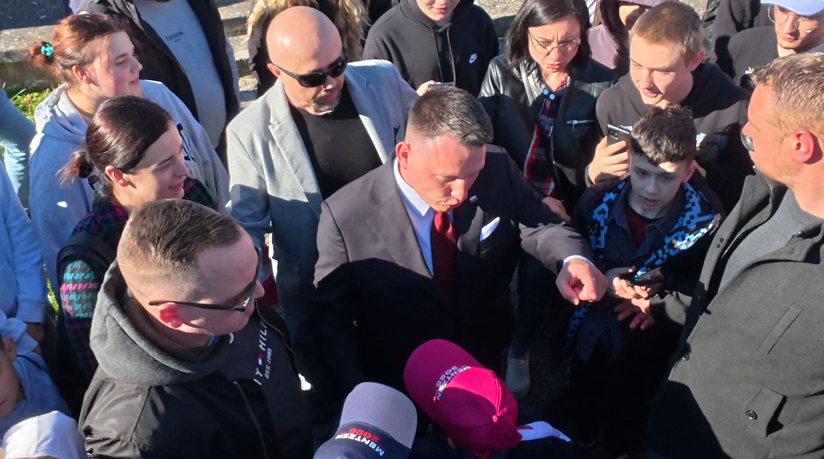 Pytałam o płatne studia przedmówcę Sławomira. Odpowiedź mało satysfakcjonująca jak słychać na filmiku. Jak schodził ze sceny i był ode mnie pół metra zapytałam o aborcję i zadałam pytanie Dlaczego nienawidzi kobiet? Słyszał bo powtórzył moje słowa i poszedł dalej podając ludziom rękę. Podchodziłam podczas robienia zdjęć tylko zamiast zdjęcia chciałam uzyskać odpowiedź na pytanie, zostałam przez ochroniarza odsunięta dwukrotnie.