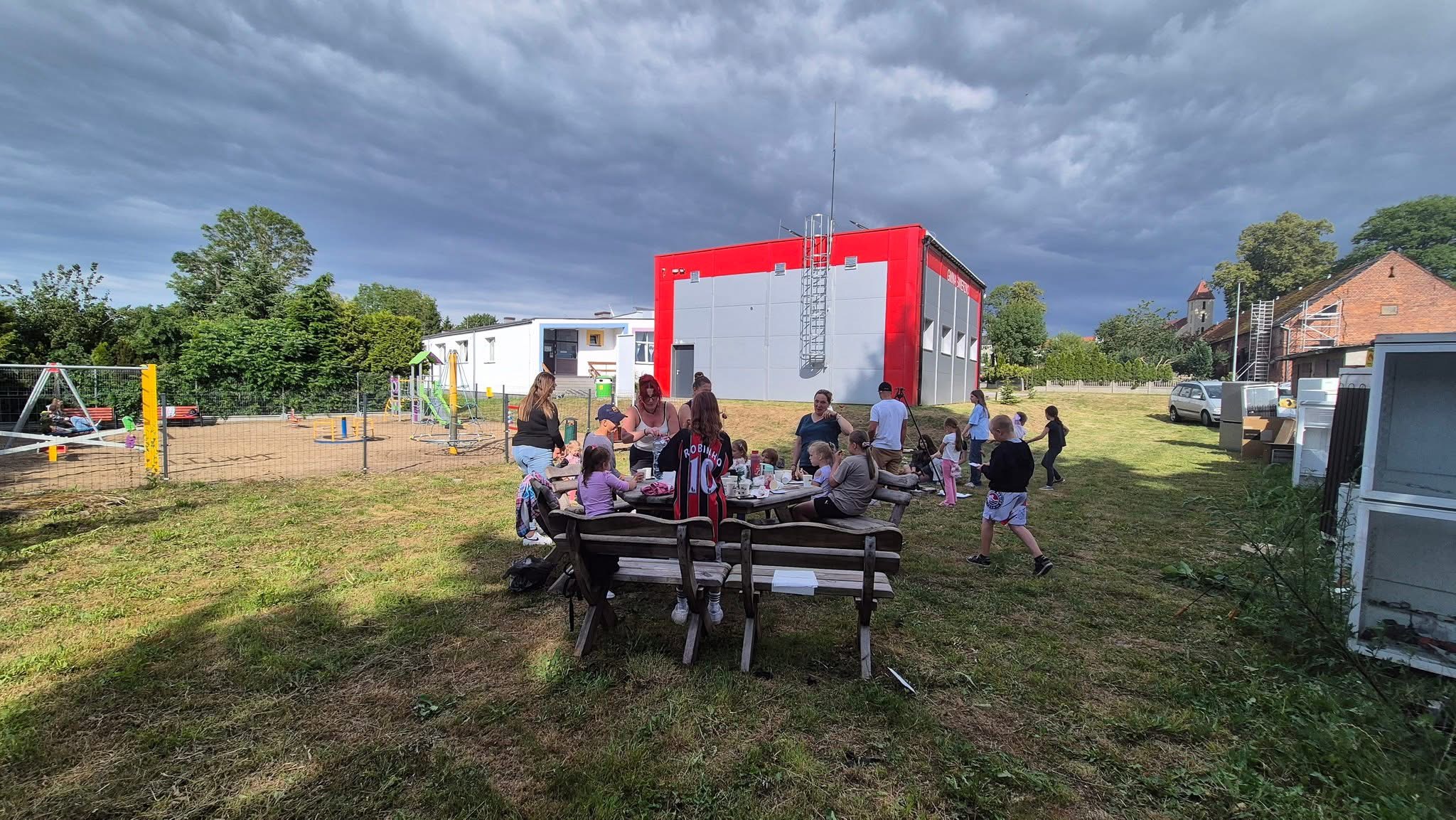 Nie zabrakło również części integracyjnej – strażacy pomogli w przygotowaniu ogniska, a sołtys Magdalena Demkowska wsparła wydarzenie zakupem kiełbasek i pomocą organizacyjną.
