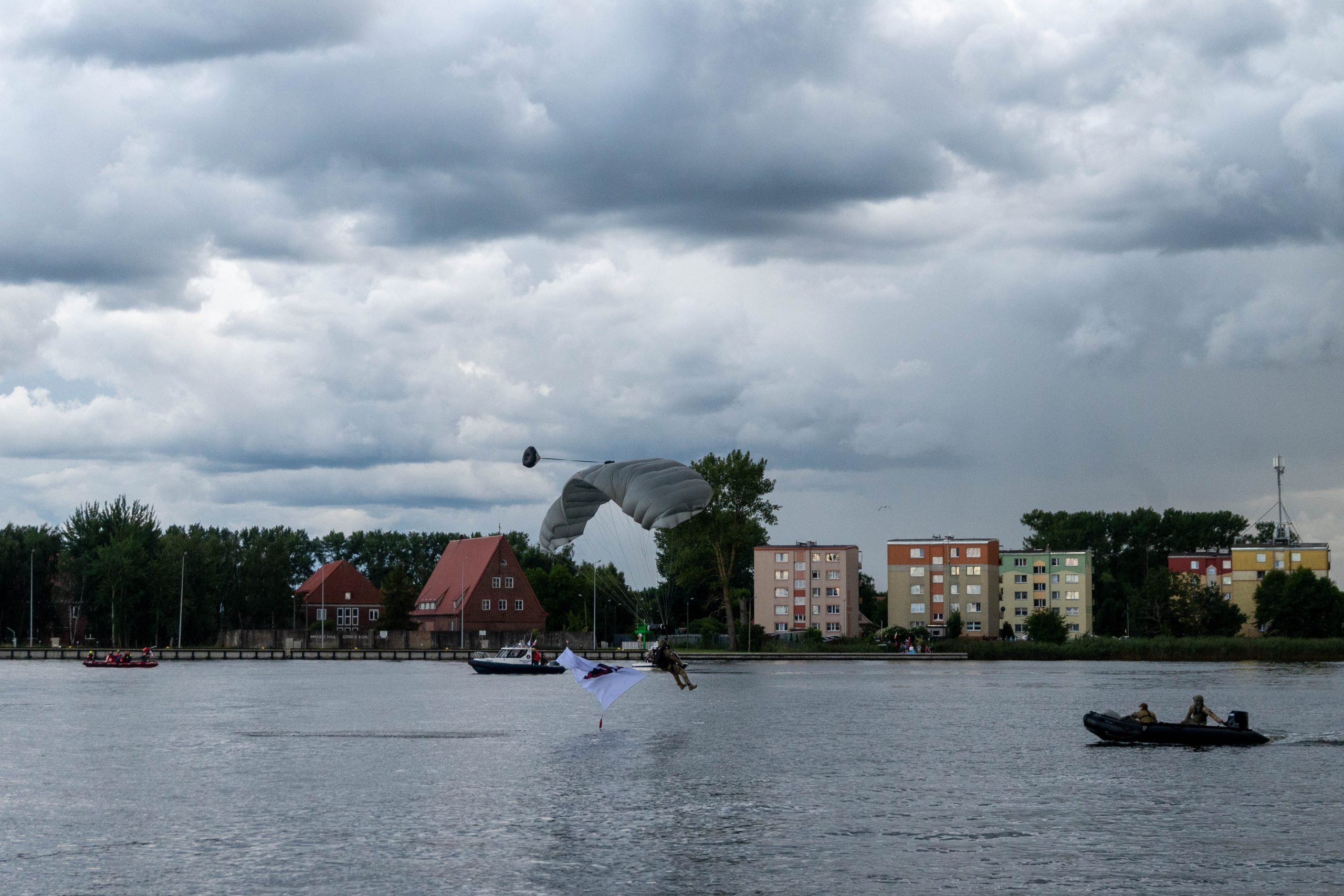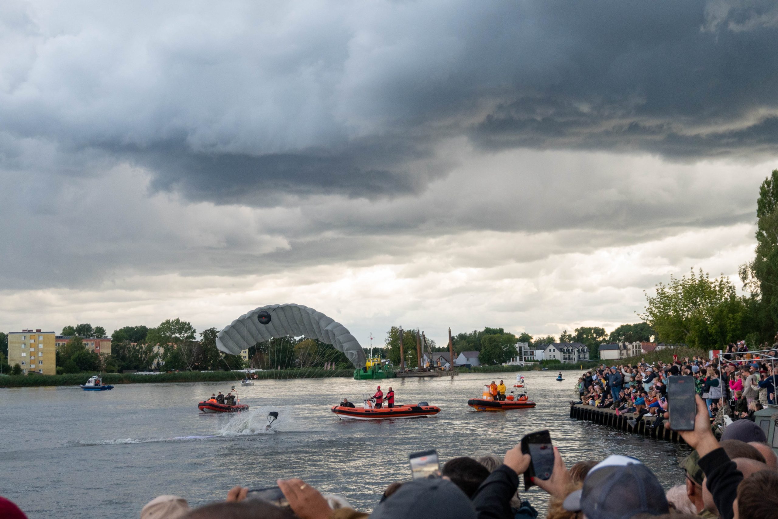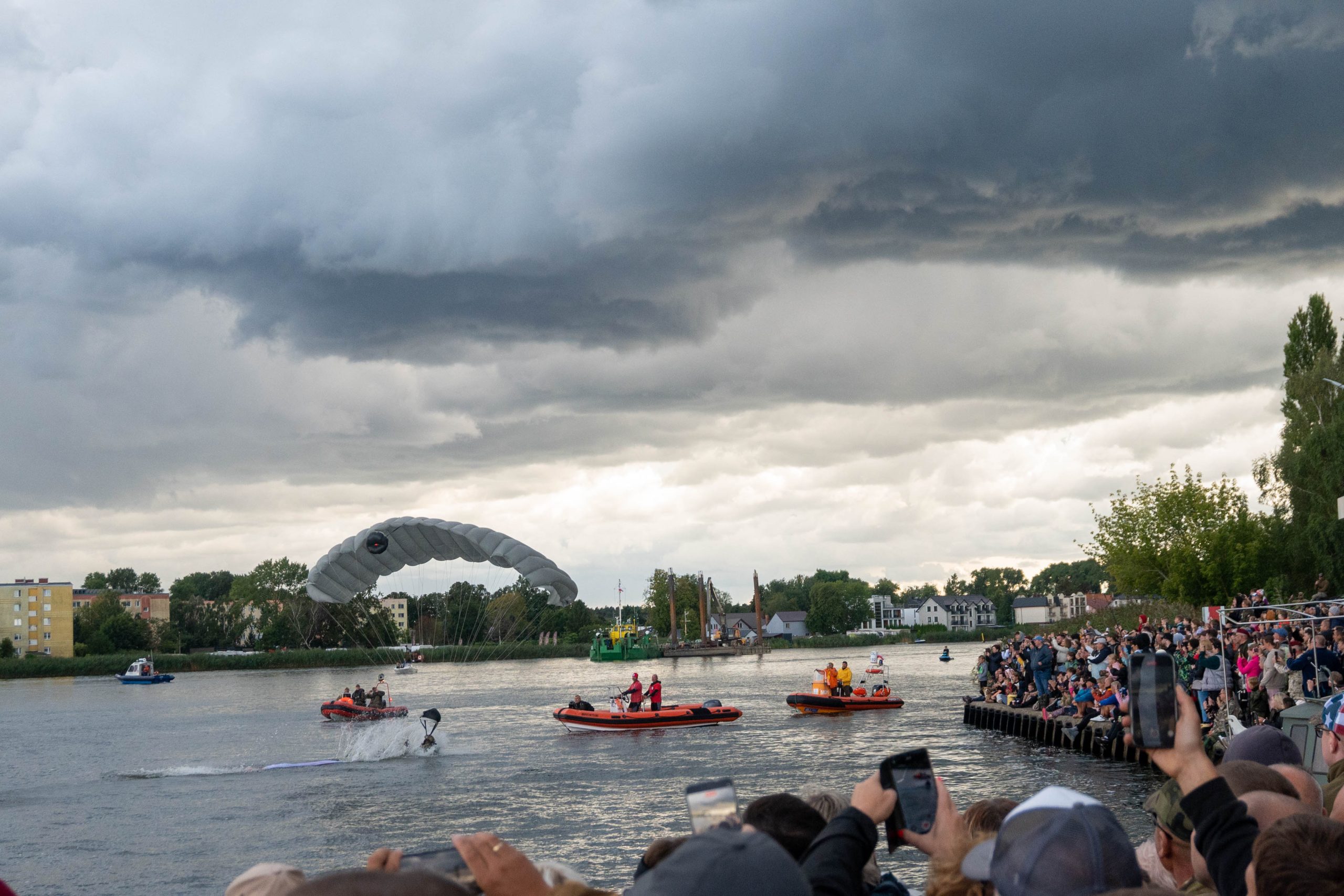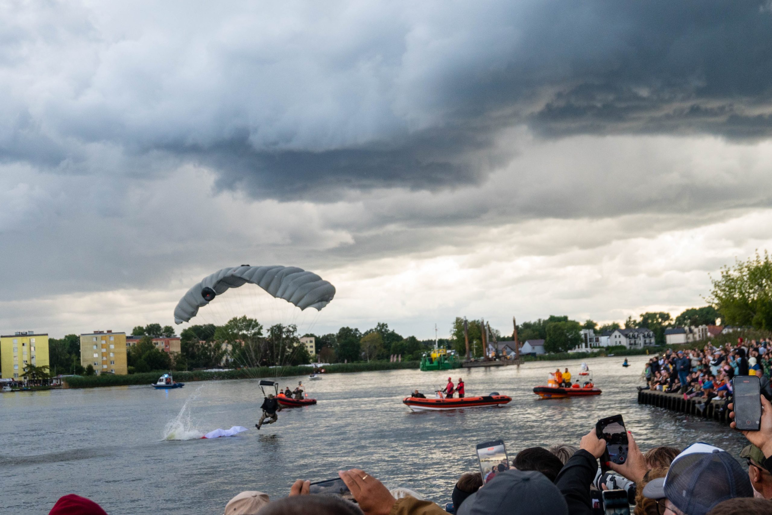 W tym roku skoki nie były pewne — pogoda mogła pokrzyżować plany. Na szczęście z wojskową precyzją udało się odnaleźć okno pogodowe i punktualnie o 18:00 rozpoczął się najpopularniejszy punkt Festynu Komandosa. Tłumy zgromadziły się dziś w Dziwnowie nad brzegiem Dziwny, by obejrzeć to widowisko.