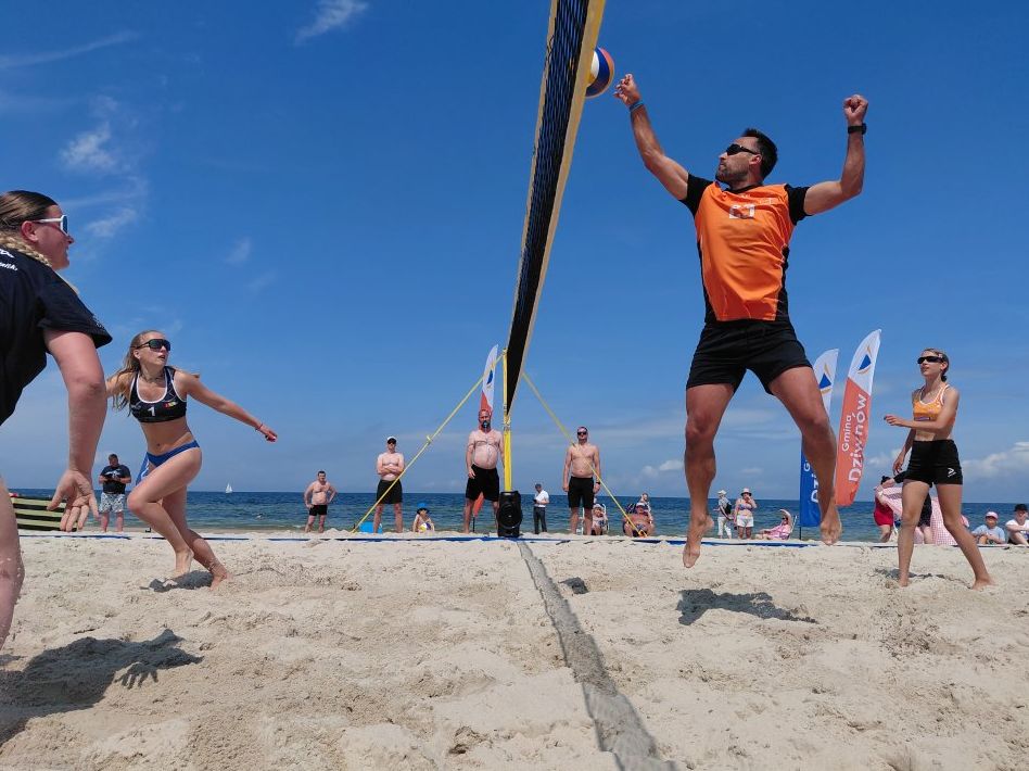 W poniedziałek, 15 lipca 2025 roku, plaża w Międzywodziu gościła uczestników Turnieju Piłki Siatkowej, który cieszył się wyjątkowo dużym zainteresowaniem. Do rywalizacji przystąpiło aż 13 drużyn, co najlepiej świadczy o rosnącej popularności tej letniej dyscypliny wśród mieszkańców i turystów. Uczestnicy rozegrali emocjonujące mecze w malowniczej scenerii nadmorskiej plaży, a każdy set dostarczał widzom solidnej dawki sportowych emocji.