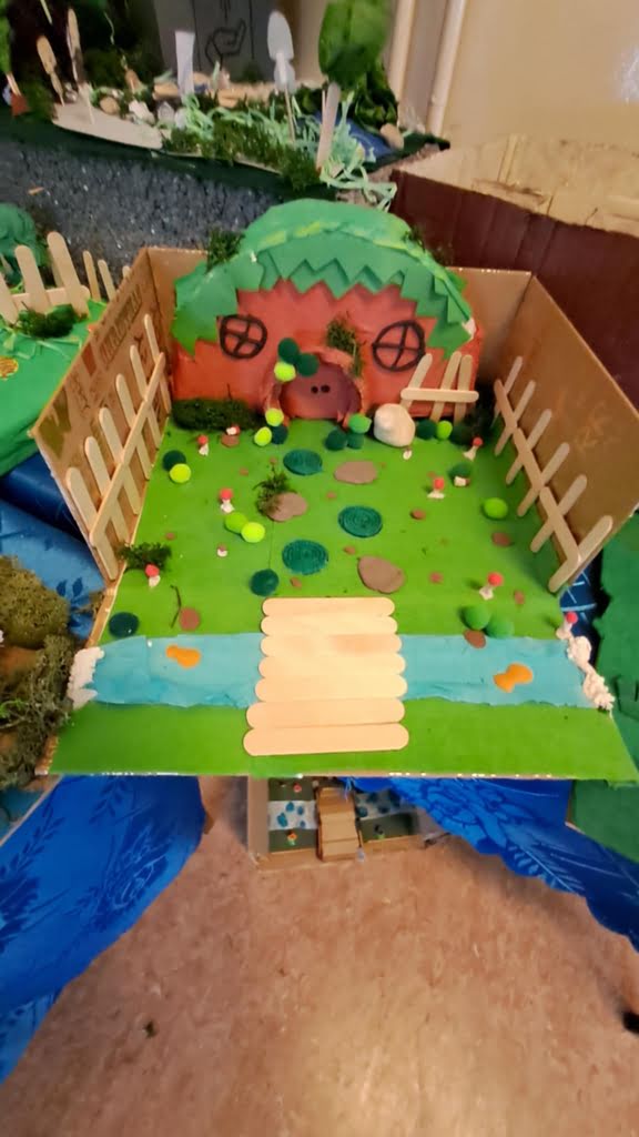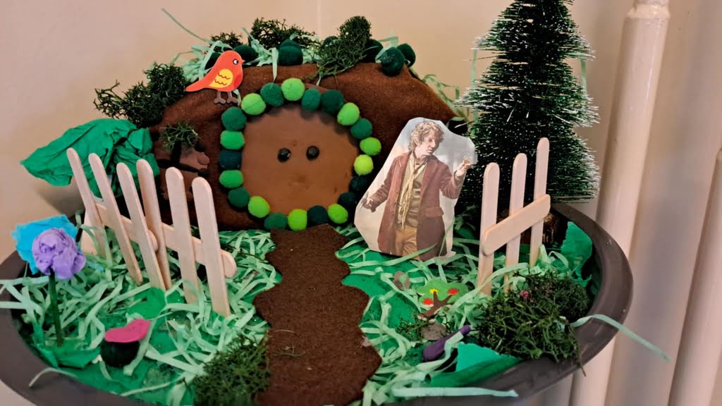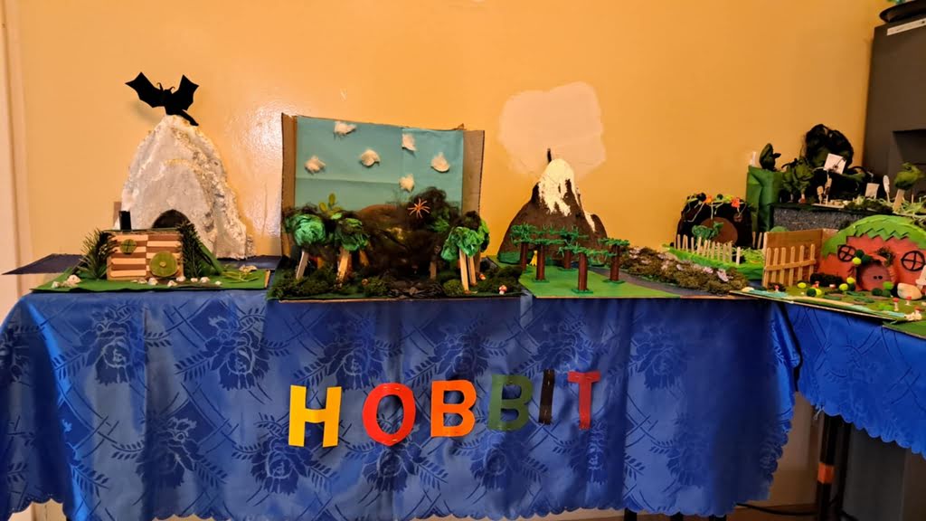 Po omówieniu książki na lekcjach języka polskiego, szóstoklasiści przygotowali makiety, które tematycznie nawiązywały do treści powieści. W szkolnym kąciku wystawowym można podziwiać ich prace, w tym: hobbicie norki, Samotną Górę strzeżoną przez Smauga, Mroczną Puszczę z pająkami oraz jaskinię Goblinów.
