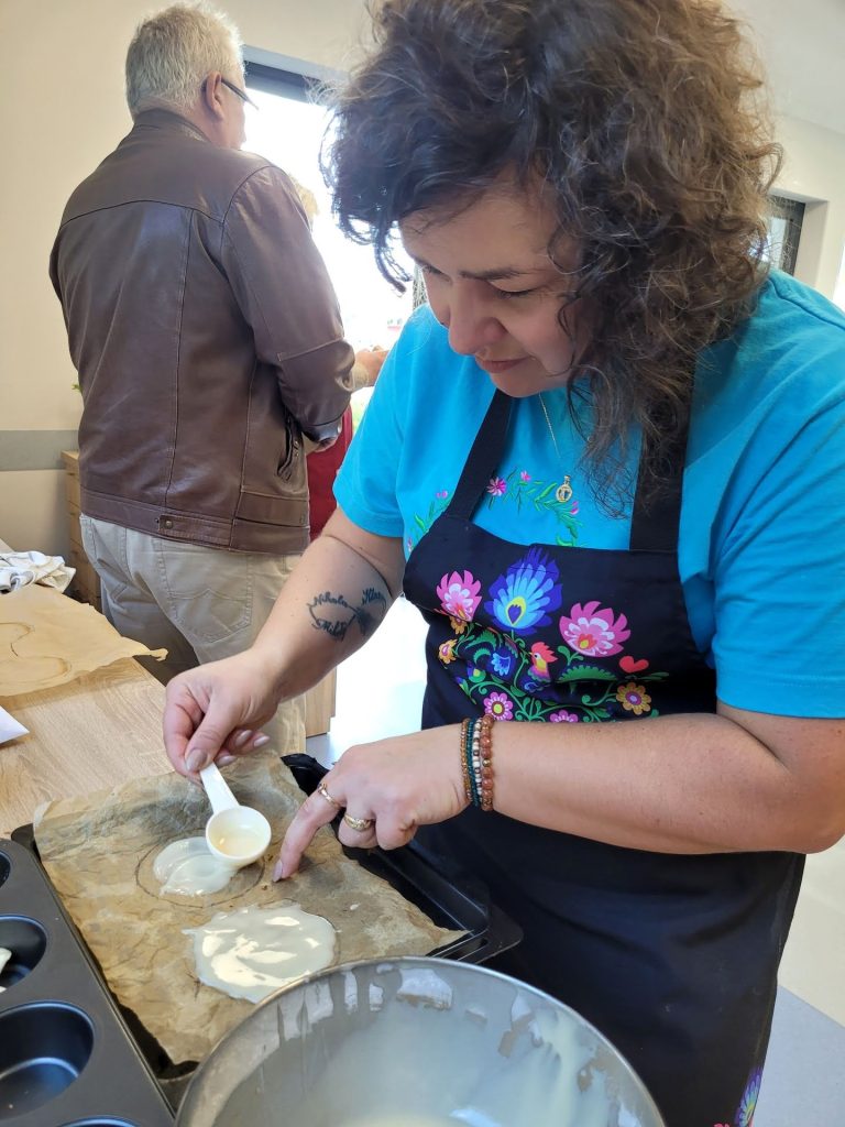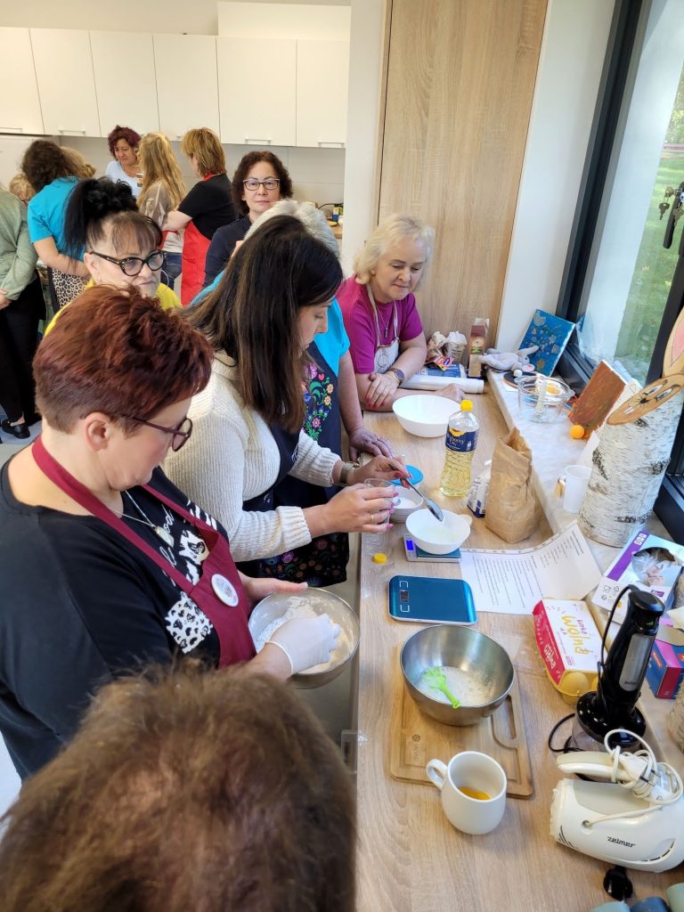 Podczas spotkania uczestnicy mieli okazję poznać nowe techniki cukiernicze, wymienić się doświadczeniami i spróbować własnoręcznie przygotowanych wypieków.