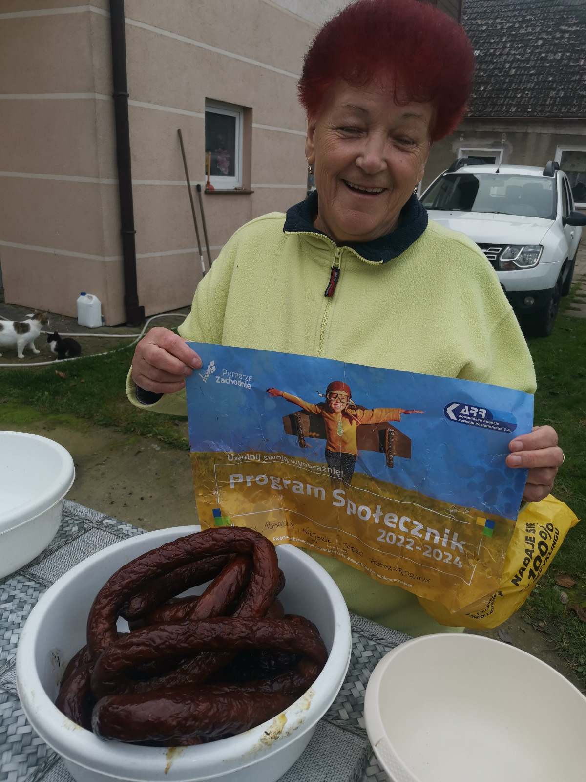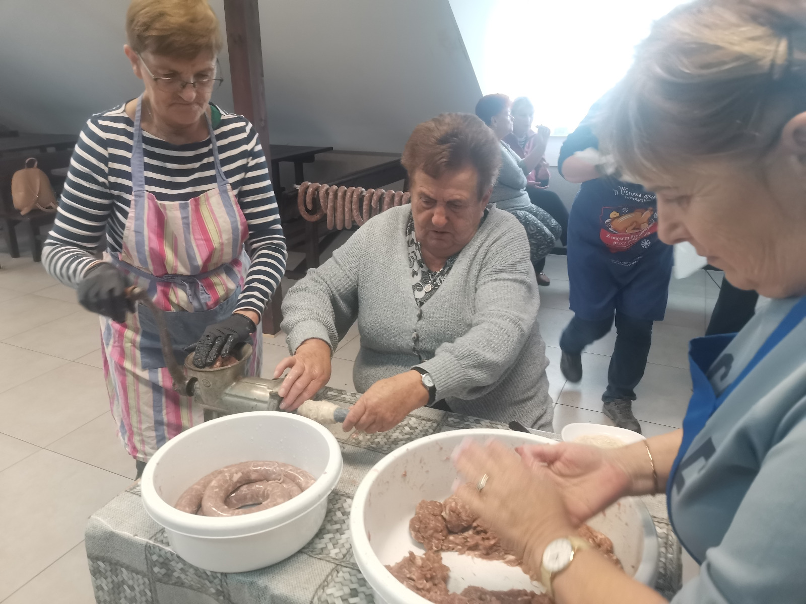 W sobotę (26.10.2024 r.) zorganizowane zostały kolejne warsztaty przez Koło Gospodyń Wiejskich w Trzebieszewie. Tym razem tematem warsztatów było wyrabianie i wędzenie kiełbasy w ramach realizowanego projektu pt. „Poplewimy, posadzimy, wiejskie jadło przyrządzimy”.
