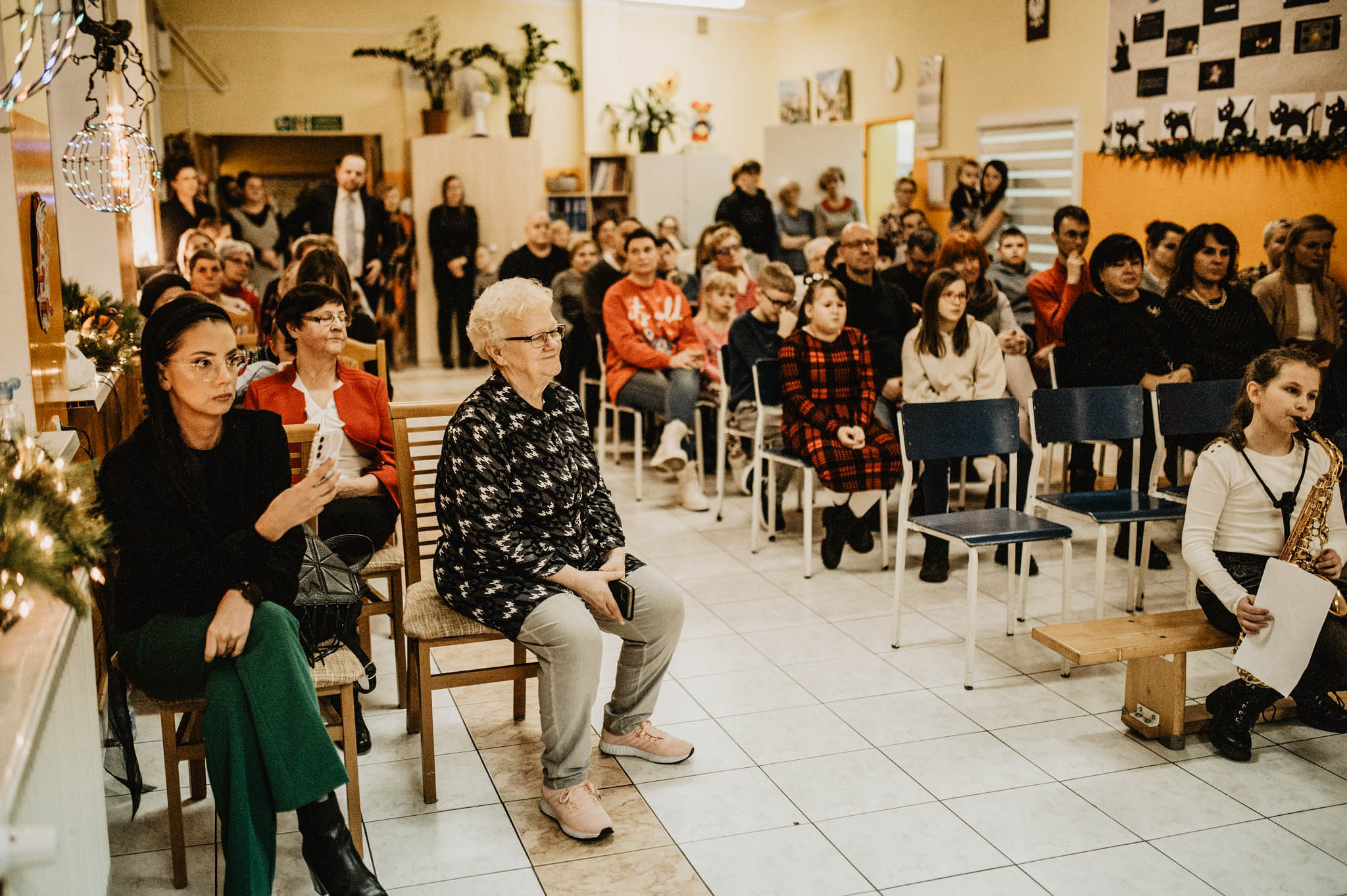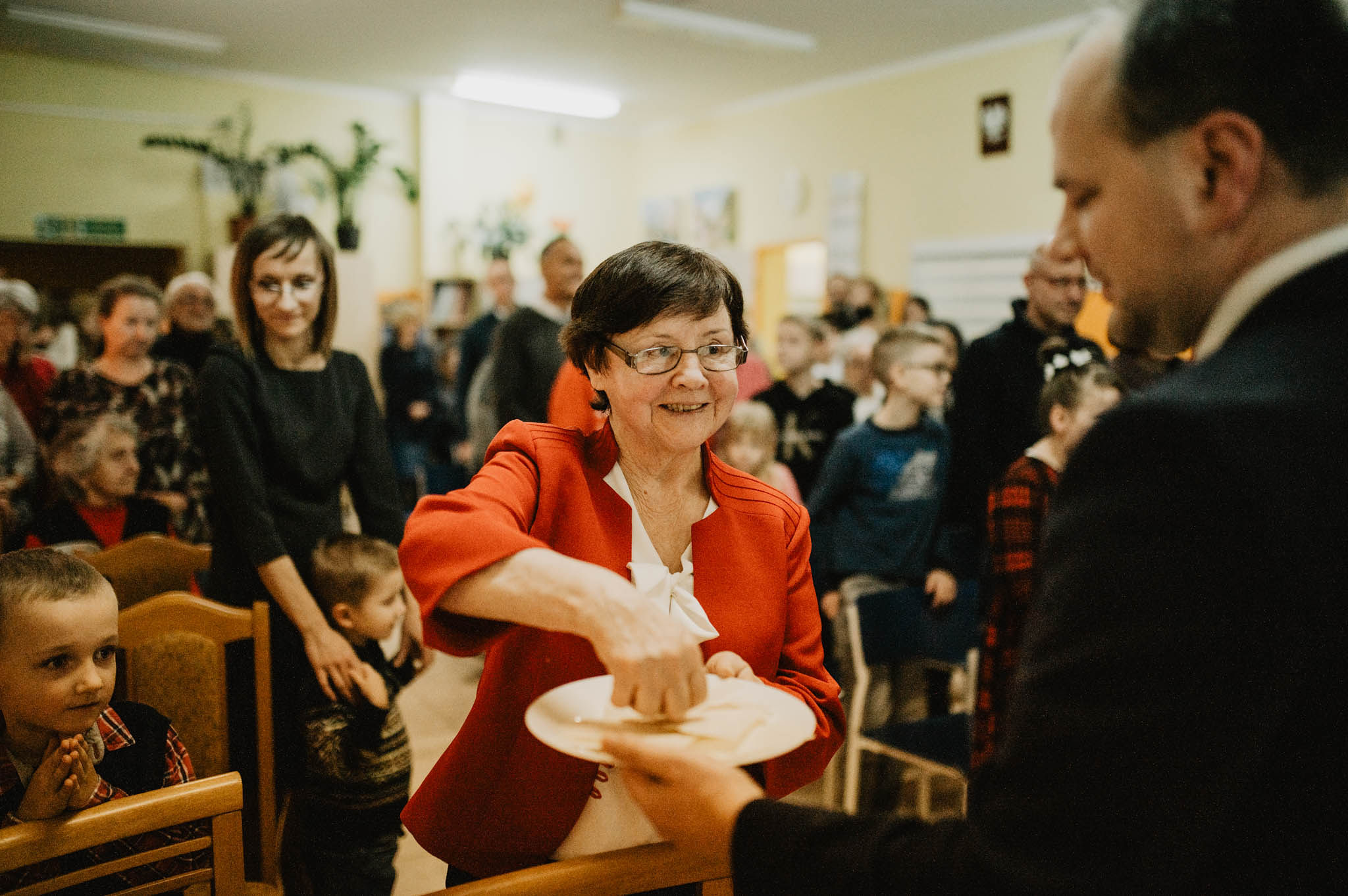 Druga część spotkania poświęcona była życzeniom, które złożyli pan Sołtys oraz ksiądz Proboszcz dla całej społeczności. Następnie uczestnicy dzielili się opłatkiem, co stworzyło niezwykle rodzinny i uroczysty nastrój.