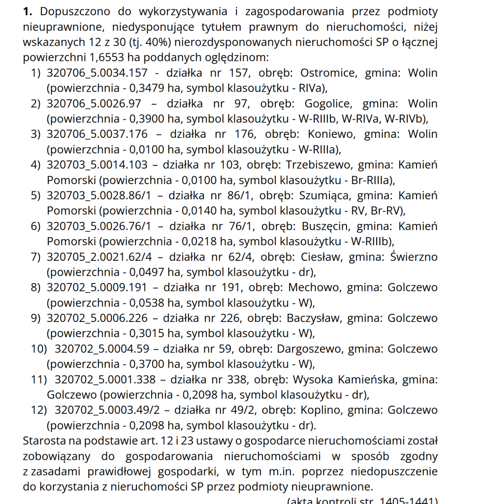 Podczas gdy zwykły obywatel musi walczyć o każdy metr kwadratowy pod budowę domu, na gruntach Skarbu Państwa w naszym powiecie panuje całkowita samowola. Aż 40% nieruchomości poddanych oględzinom było użytkowanych przez osoby nieuprawnione, bez żadnej umowy i bez płacenia ani grosza do publicznej kasy.
