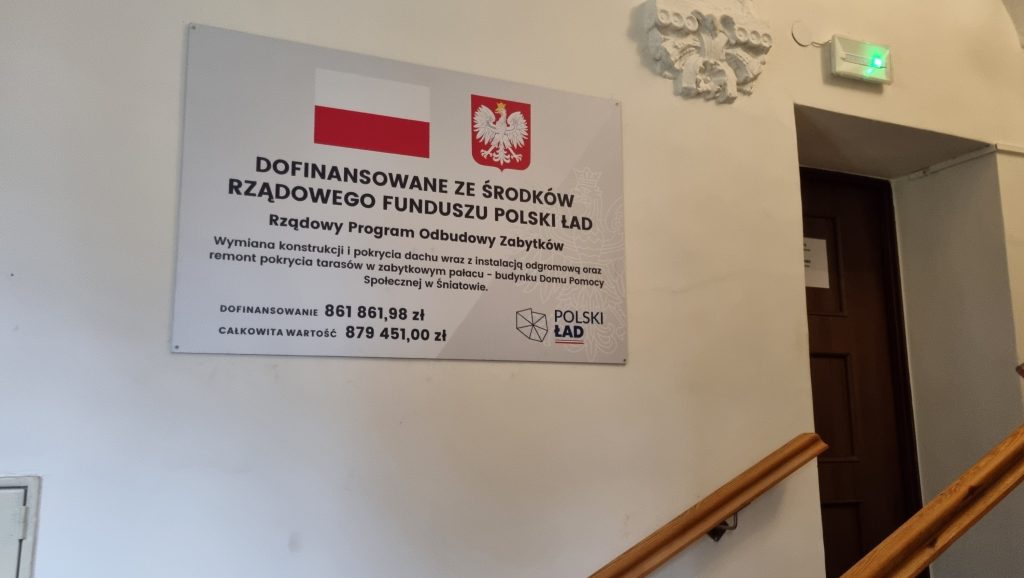 29 grudnia br. dokonano odbioru kolejnej, zakończonej w tym roku, inwestycji Powiatu Kamieńskiego, zrealizowanej tym razem w zabytkowym pałacu — budynku Domu Pomocy Społecznej w Śniatowie. Roboty budowlane, które trwały od lipca br., polegały na wymianie konstrukcji i pokrycia dachu wraz z instalacją odgromową oraz remoncie tarasów budynku i wykonaniu nowej instalacji TV satelitarnej, dla pensjonariuszy.