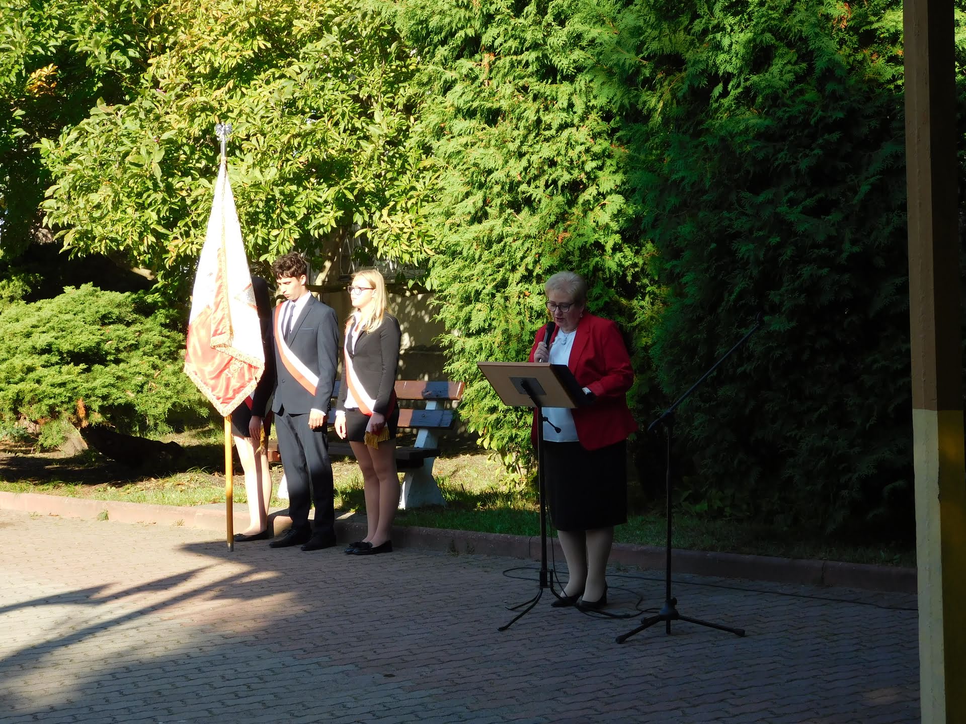 Na placu apelowym, przy pomniku patrona szkoły Stanisława Staszica, odbyła się inauguracja nowego roku szkolnego. W uroczystości uczestniczyła społeczność szkolna oraz zaproszeni goście: przedstawicielki Starostwa Powiatowego w Kamieniu Pomorskim – Jadwiga Adamowicz, członek Zarządu Powiatu, Marlena Marchewka, naczelnik Wydziału Edukacji, Kultury i Sportu, a także Emilia Kwiatkowska, przewodnicząca Rady Rodziców, oraz rodzice uczniów.